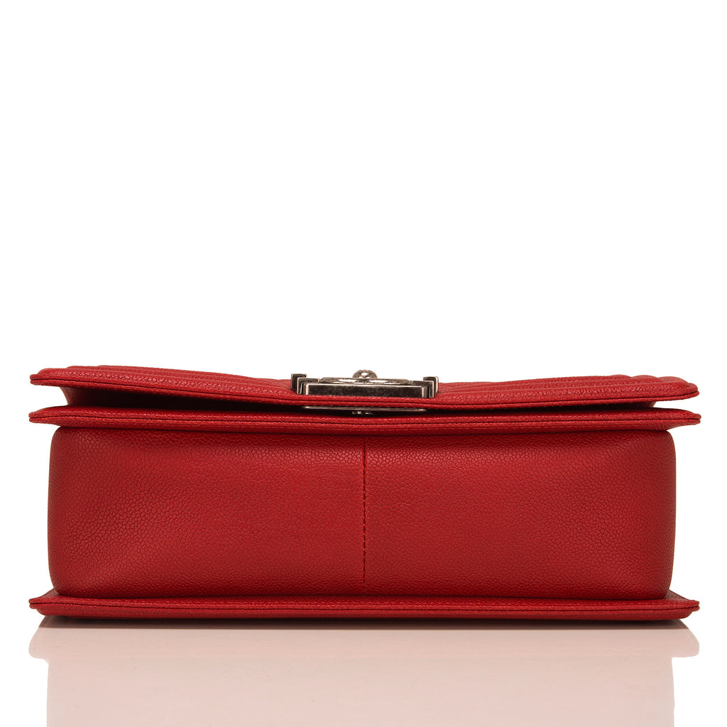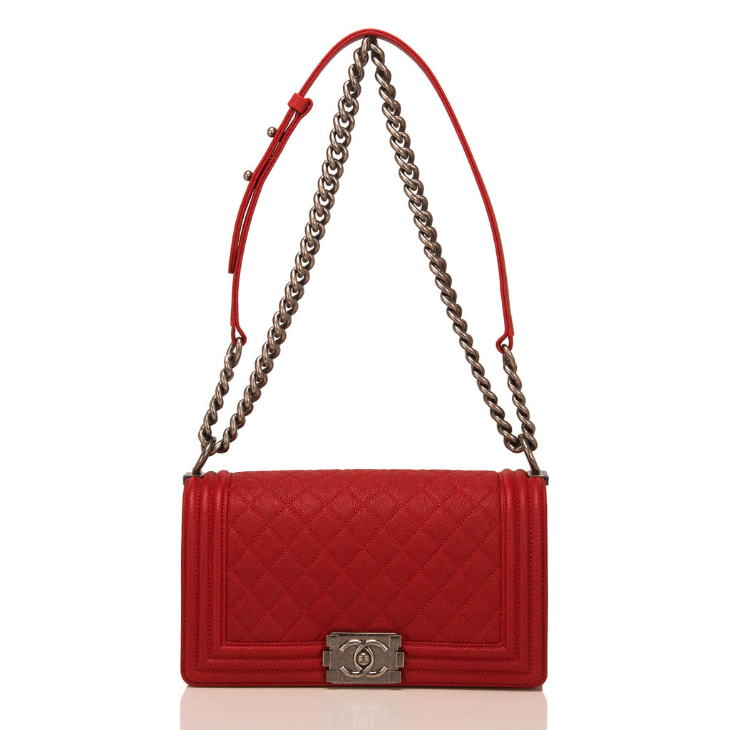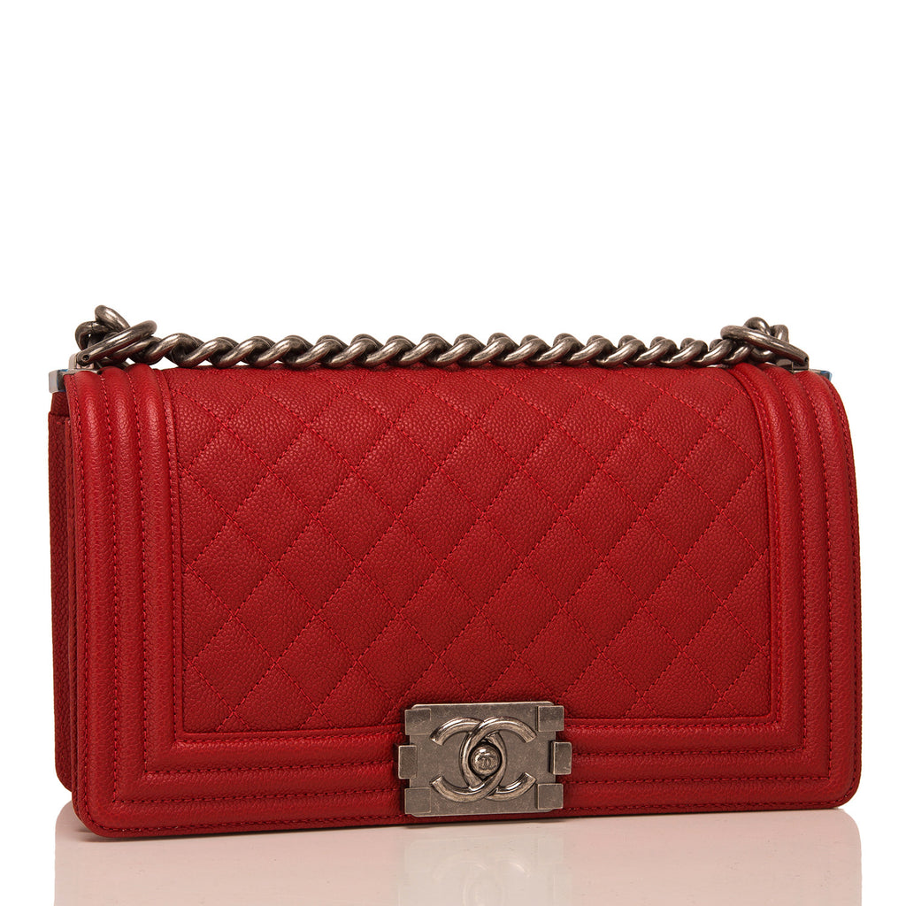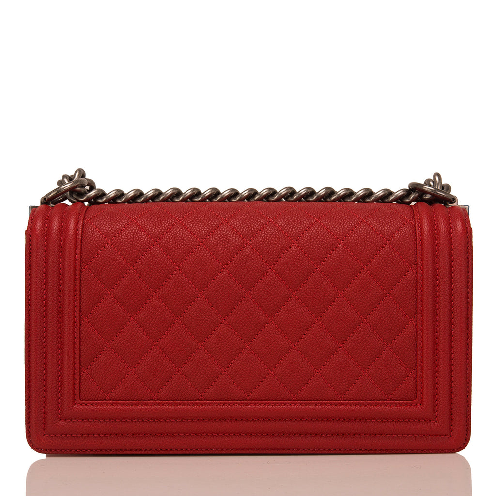 Chanel Old Medium Boy bag of red quilted caviar (grained calfskin) leather and ruthenium hardware.