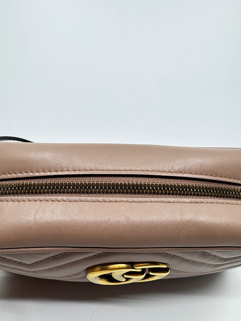 GG Marmont Small Matelassé Zipped Dusty Pink Shoulder Bag