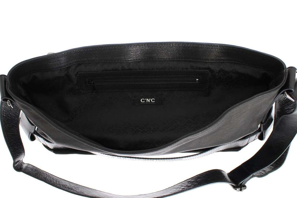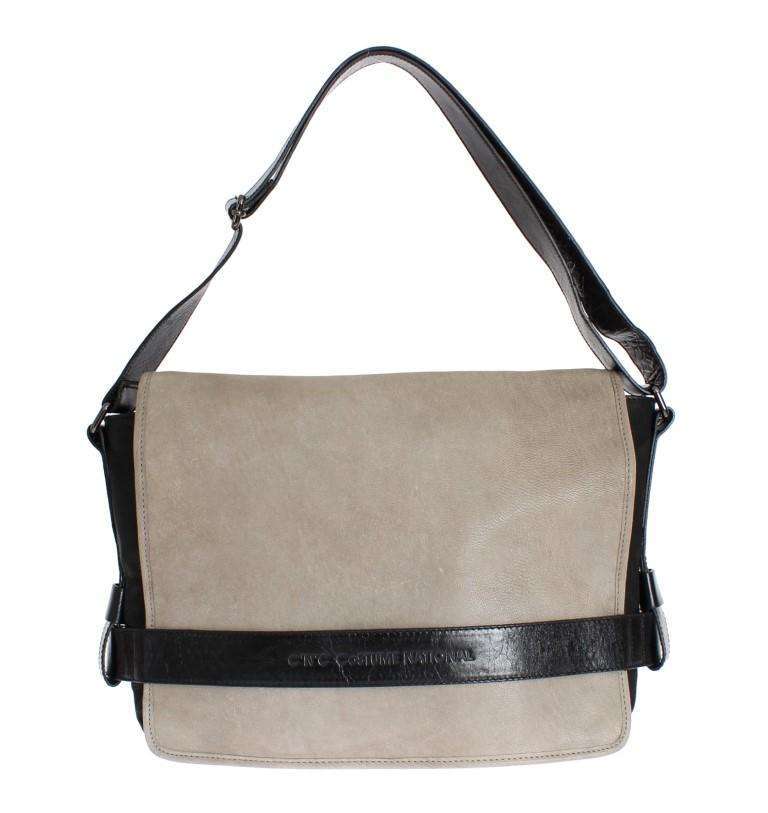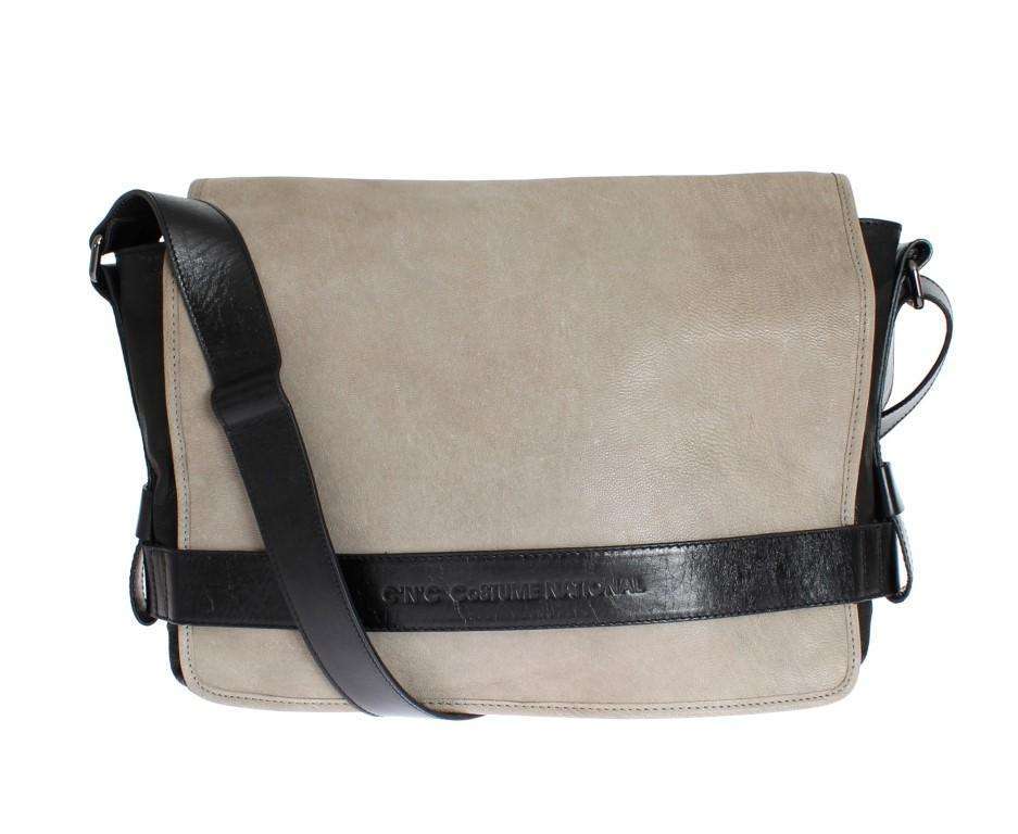 C’N’C COSTUME NATIONAL Black Beige Leather Messenger Shoulder Bag