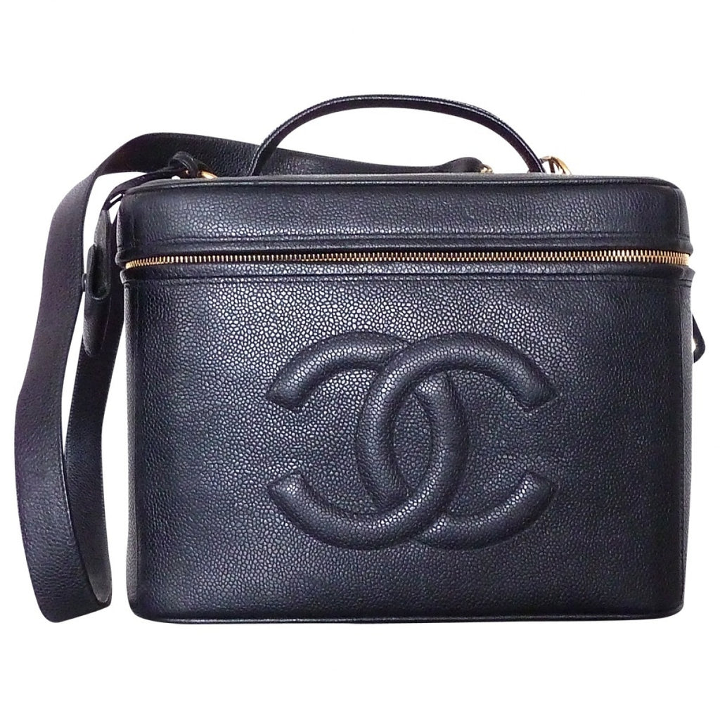 Chanel Vanity Black Leather handbag for women. Used condition.