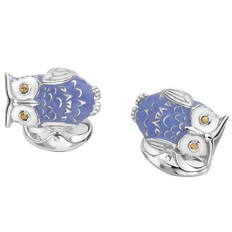 Twit Twoo - these cufflinks will get all the whistles! Made from the finest sterling silver and hand-enamelled in a striking blue finish. With small domed oval spring link fittings and a full set of Deakin &Francis traditional hallmarks for authenticity, these classic cufflinks are packaged in our unique presentation box and giftbag.