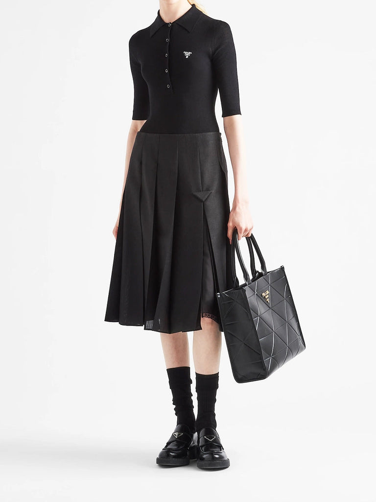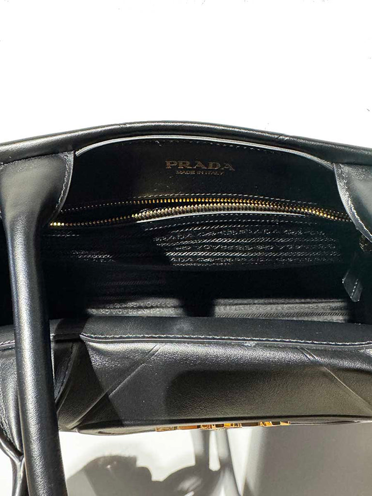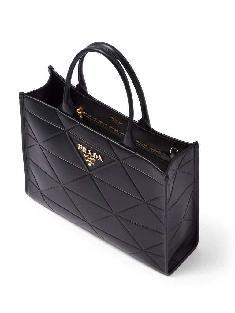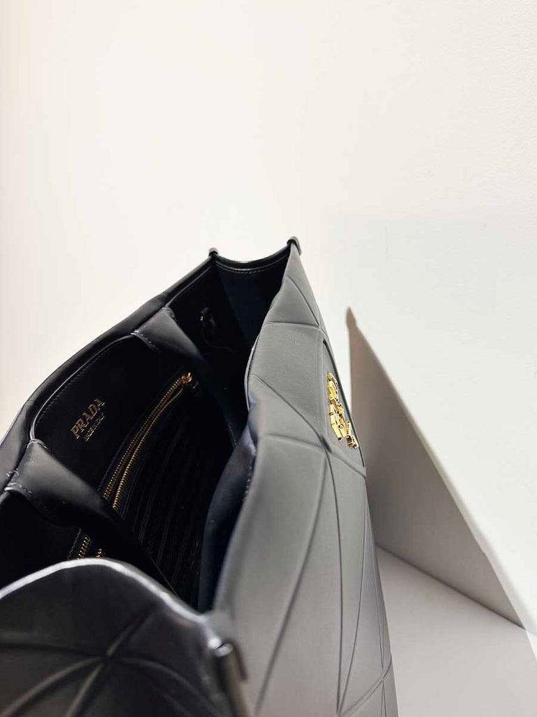 Large Leather Prada Symbole Bag with Topstitching in Black