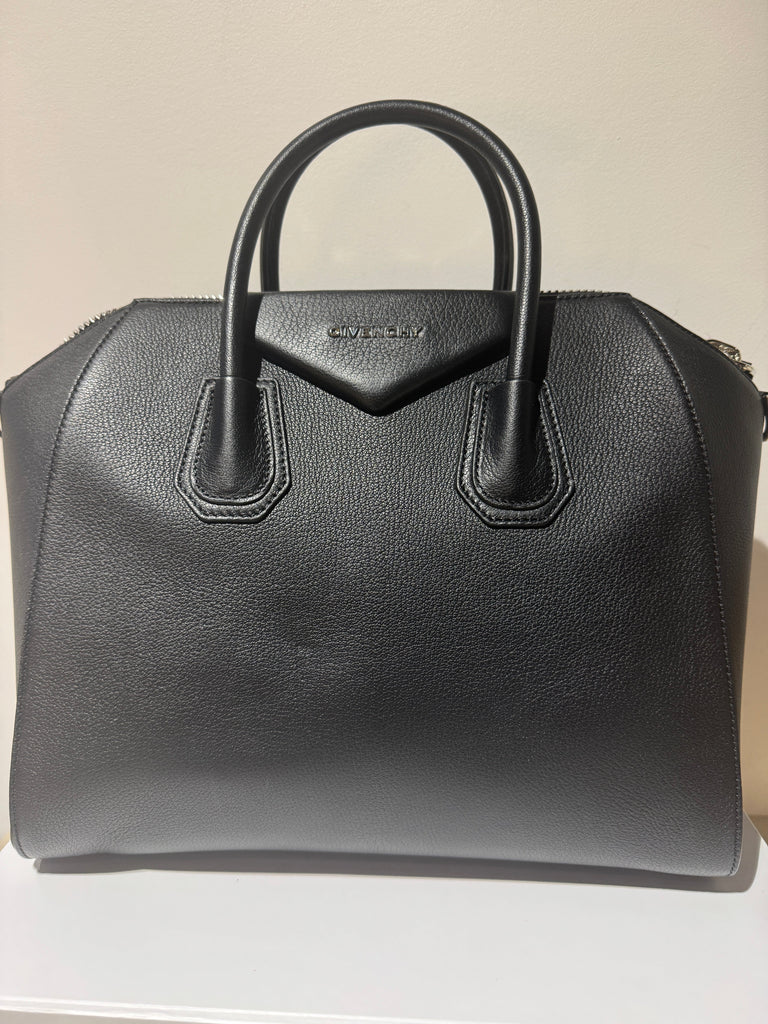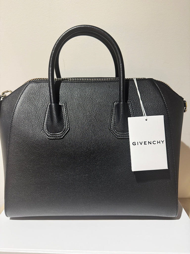 Medium Antigona Bag Colour: Black 100% Calf leather Adjustable and removable shoulder strap Two top handles Internal zipped and slip pockets Fully lined in black canvas Zip fastening along top Dust bag & Care card Style ID: BB05118012001 Made in Italy      *Please refer to photos for condition. This is an ex-display product. May have minor dents. Measurements:    Width: 33cm x Height: 28cm x Depth: 19cm  * There may be a slight difference in the tone of colours depending on the resolution of your monitor. * Do note that there may be a 1-2cm difference in measurements depending on how the item is measured and workmanship.