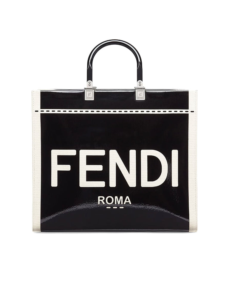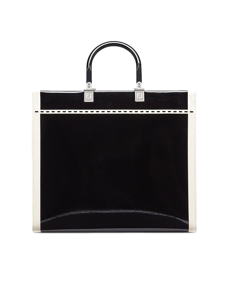 Medium Sunshine Shopper Canvas and Black Patent Leather